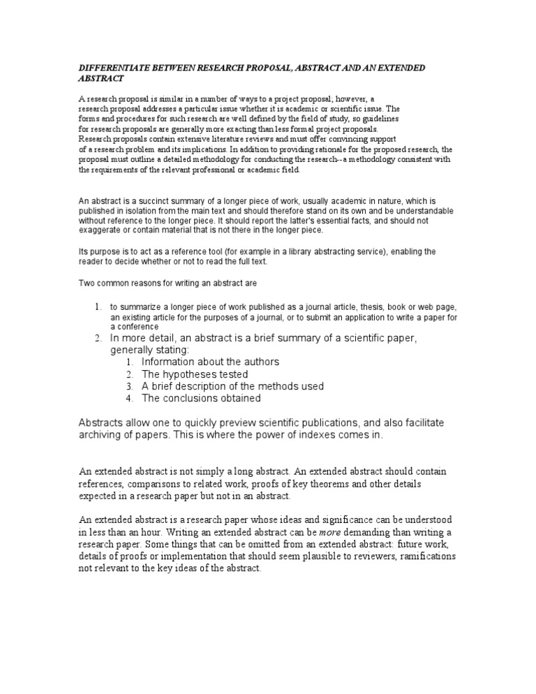 What is a proposal abstract? how to write a research abstract. If your paper will be published, you might have to add a list of keywords at the end of the abstract.